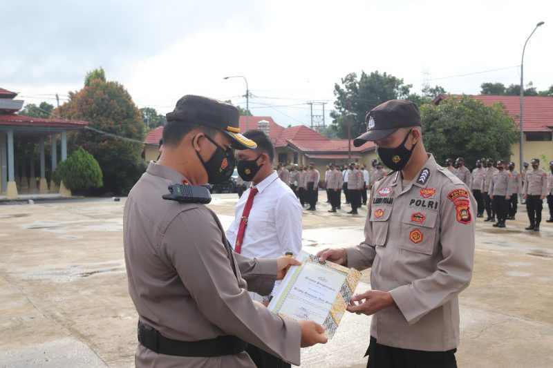 MUSI RAWAS, SH – Atas kinerja dan dedikasi dalam bertugas, 28 personil Polres Musi Rawas diganjar penghargaan yang langsung diberikan Kapolres Musi Rawas AKBP Efrannedy, usai apel pagi dihalaman apel Mapolres Mura, Senin (22/2) pagi pukul 07.30 Wib.