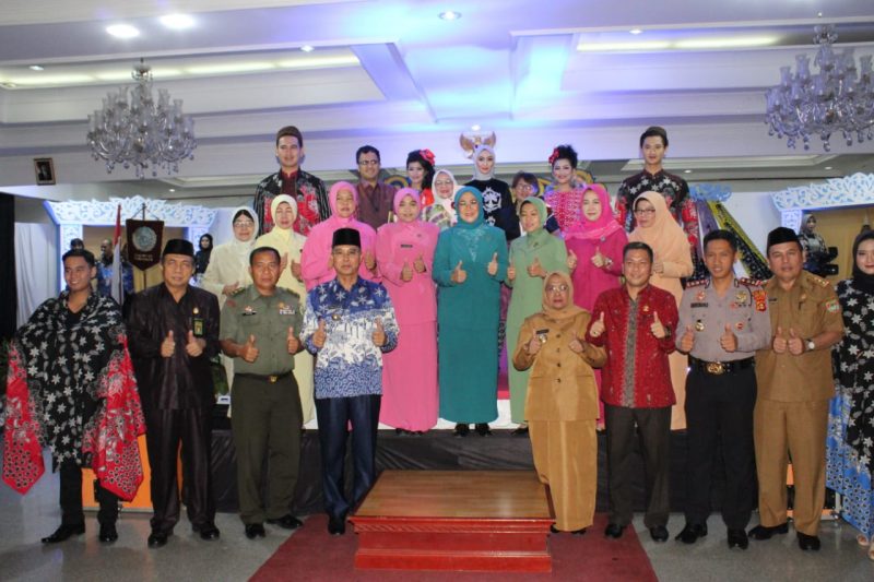 MUSI RAWAS, SH – Fashion Show Batik khas Kabupaten Musi Rawas menghiasi kemeriahan peringatan Hari Kesatuan Gerak PKK Ke 47 tingkat Kabupaten Musi Rawas tahun 2019, Selasa (12/11) di Gedung Bagas Raya.