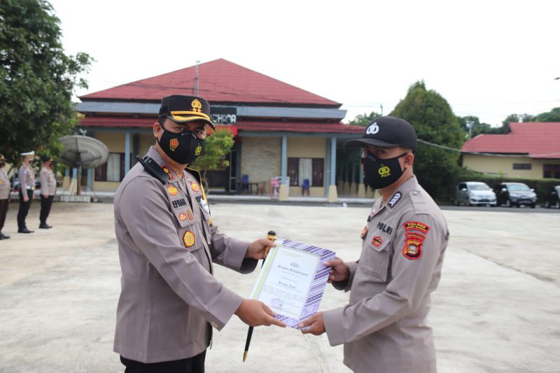 MUSI RAWAS, SH – Atas kinerjanya dalam kecepatan dan ketepatan laporan keuangan sebagai Kasi Keuangan Polres Musi Rawas (Mura). Bripka Juari menerima piagam penghargaan dari Kapolres Musi Rawas AKBP Efrannedy, Selasa (2/2/2021).