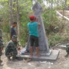 Brebes, Koptu Tohirin Tekhnisi Kodim 0713/Brebes yang tergabung dalam Satgas TMMD terlihat sedang mengukir Tugu TMMD…