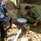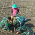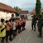 Brebes, Serda Anang Jatmiko salah satu anggota Satgas TMMD Kodim 0713/Brebes bersama rekan-rekannya yang lain memberikan…