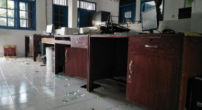 Dengan cara melakukan pemecahan jendela kantor dengan batu dan merusak peralatan dan perlengkapan kantor seperti, meja kerja, komputer, printer dengan cara dilempar dan dibanting.