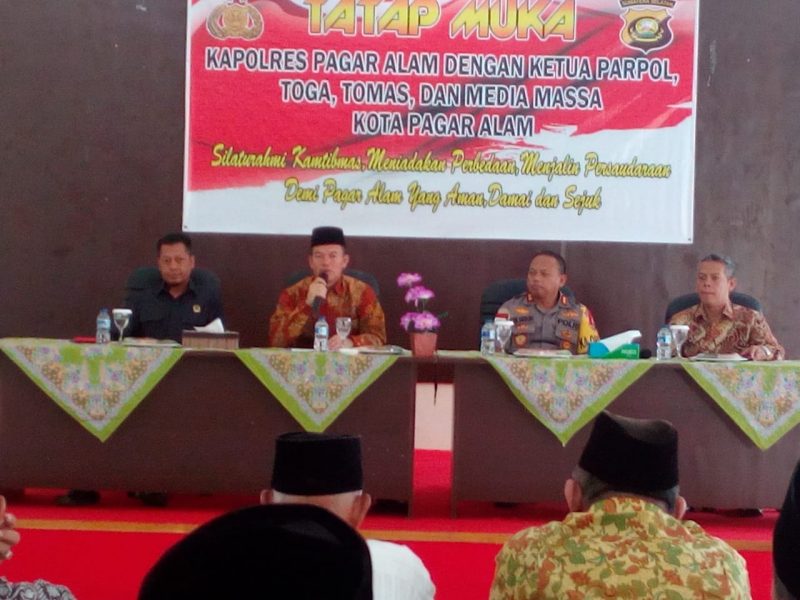 PAGARALAM, SH – Kapolres Pagaralam AKBP Trisaksono Puspo Aji SIK MSi mengelar tatap muka dengan ketua partai politik, Toga, Tomas, dan media massa demi mewujudkan Pagaralam aman, damai dan sejuk.