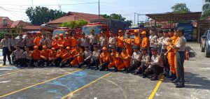 Tampak dalam apel tersebut diikuti jajaran Polres Musi Rawas seperti Wakapolres, Kasat Sabhara, Kasat Binmas, BPBD Kabupaten Musi Rawas dan Basarnas Provonsi Sumatera Selatan.