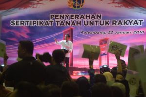 Penyerahan 9000 sertifikat tanah tersebut diserahkan langsung Presiden Republik Indonesia Joko Widodo saat di PSCC ( Palembang Sport Convention Center ), Senin (22/1/2018).