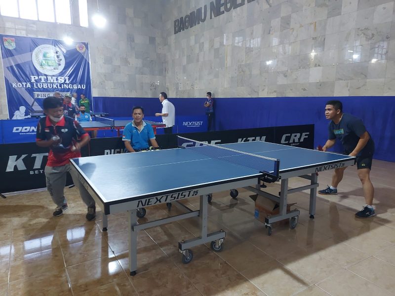 LUBUKLINGGAU, SH – Pertandingan persahabatan tenis meja antara tim pengurus Persatuan Tenis Meja Seluruh Indonesia (PTMSI) Kota Lubuklinggau dengan atlet sekaligus pengurus Union Table Tennis Palembang, Rabu (15/9/2021), berlangsung seru.