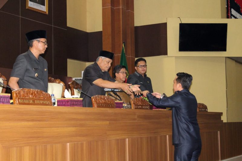 MUSI RAWAS, SH – Sepakat, Bupati Musi Rawas (Mura), H Hendra Gunawan dan Ketua DPRD Mura, Yudi Fratama menandatangani nota kesepakatan Kebijakan Umum Anggaran (KUA) APBD serta Prioritas dan Plafon Anggaran Sementara (PPAS) APBD Tahun Anggaran 2020, Selasa (24/9) dalam rapat paripurna DPRD Kabupaten Musi Rawas (Mura).