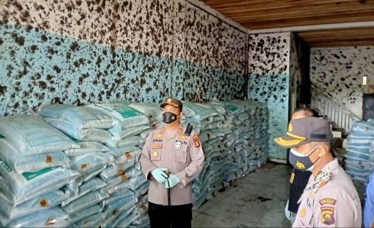 Di gudang ini, ada 325 karung ukuran 50 kg pupuk palsu. Kemudian Jumat (3/9/2021) Sumali menunjukkan gudang kedua di Desa Pedang, Kecamatan Muarabeliti, Kabupaten Mura.
