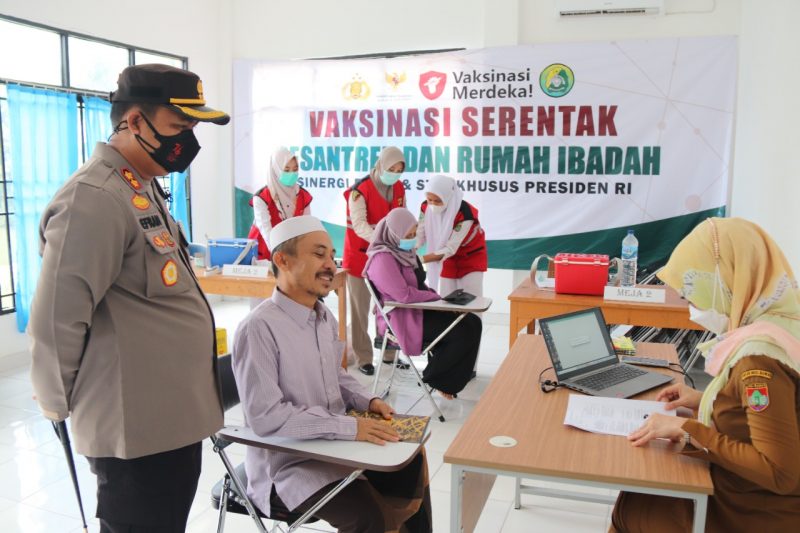 MUSI RAWAS, SH – Polres Musi Rawas (Mura) melaksanakan vaksinasi serentak di pesantren dan rumah ibadah di Kabupaten Musi Rawas, sekitar pukul 10.00 Wib, Senin (7/9/2021).