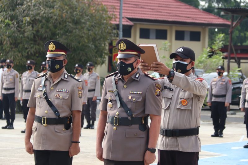 Kapolres Mura, AKBP Efrannedy menyampaikan arahan dan sambutannya berdasarkan keputusan Kapolda Sumsel Nomor : KEP/682/VIII/2021 tanggal 23 Agustus 2021 tentang pemberhentian dari dan pengangkatan dalam jabatan di lingkungan Polda Sumsel.