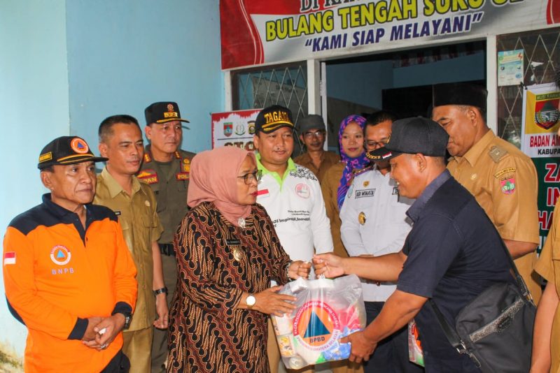 MUSI RAWAS, SH – Wakil Bupati Musi Rawas Hj Suwarti menyerahkan bantuan untuk korban terdampak banjir di kantor Kecamatan BTS Ulu Cecar, Selasa (11/2/2020). Wabup juga meninjau secara langsung lokasi beberapa rumah warga yang terendam banjir.