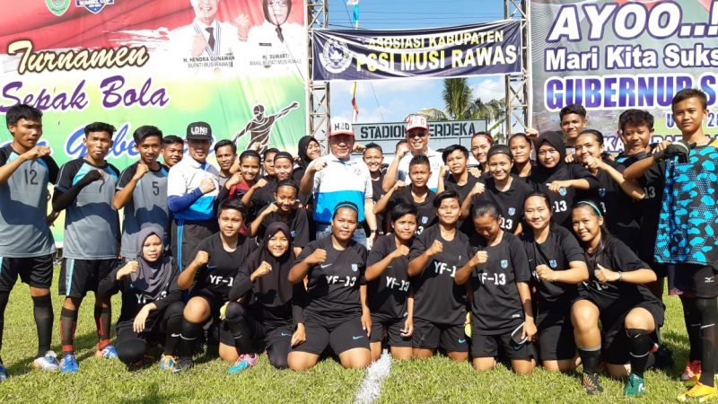 MUSI RAWAS, SH – Turnamen Sepakbola Piala Gubernur Sumsel U20 tahun 2019 resmi bergulir. Kick off dimulainya turnamen tersebut secara langsung di lakukan Gubernur Sumsel H Herman Deru di dampingi Bupati Musi Rawas H Hendra Gunawan di Lapangan B Srikaton Tugumulyo, Musi Rawas, Jumat (12/7/2019).