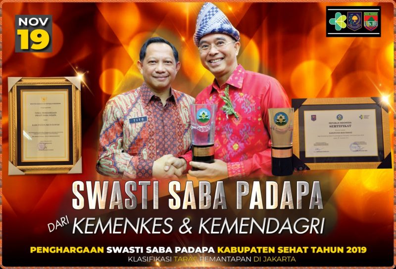 “Alhamdulilah baru kemarin (18/11/2019) Musi Rawas menorehkan prestasi penghargaan Apresiasi Bunda Paud Tingkat Nasional dan hari ini kita menorehkan prestasi kembali (menerima) Penghargaan Swasti Saba Padapa atas keberhasilan dalam menyelenggarakan Kabupaten Sehat Tahun 2019,” ungkap bupati.